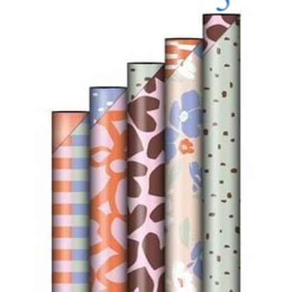 Inpak papier met de kleuren roze,oranje,blauw & groen andere zijde is oranje.